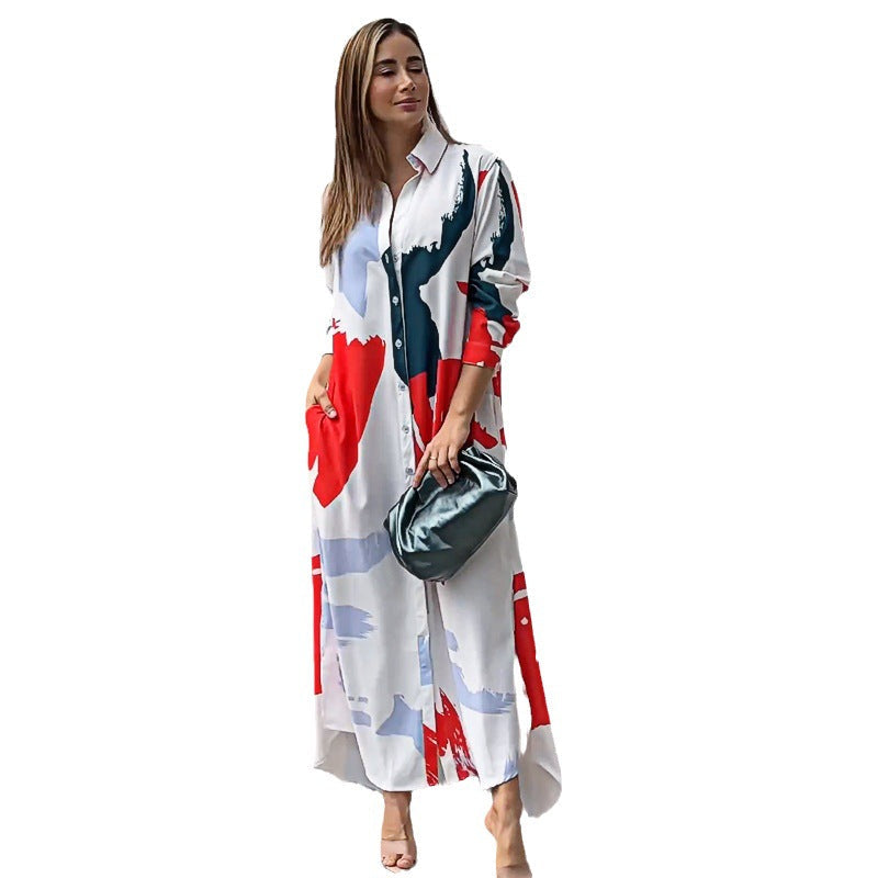 Printed loose shirt dress