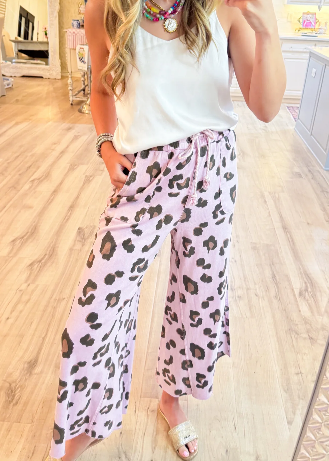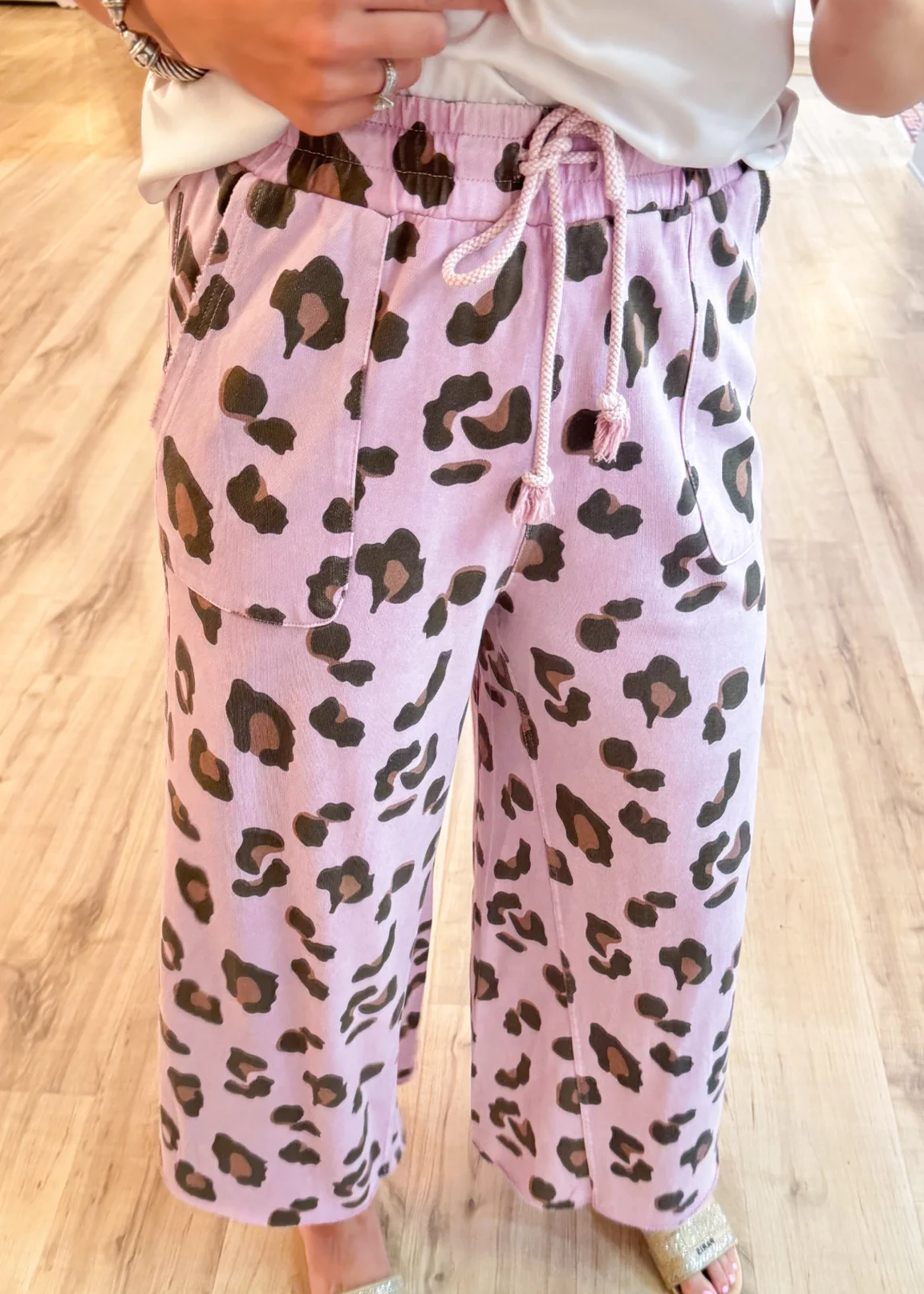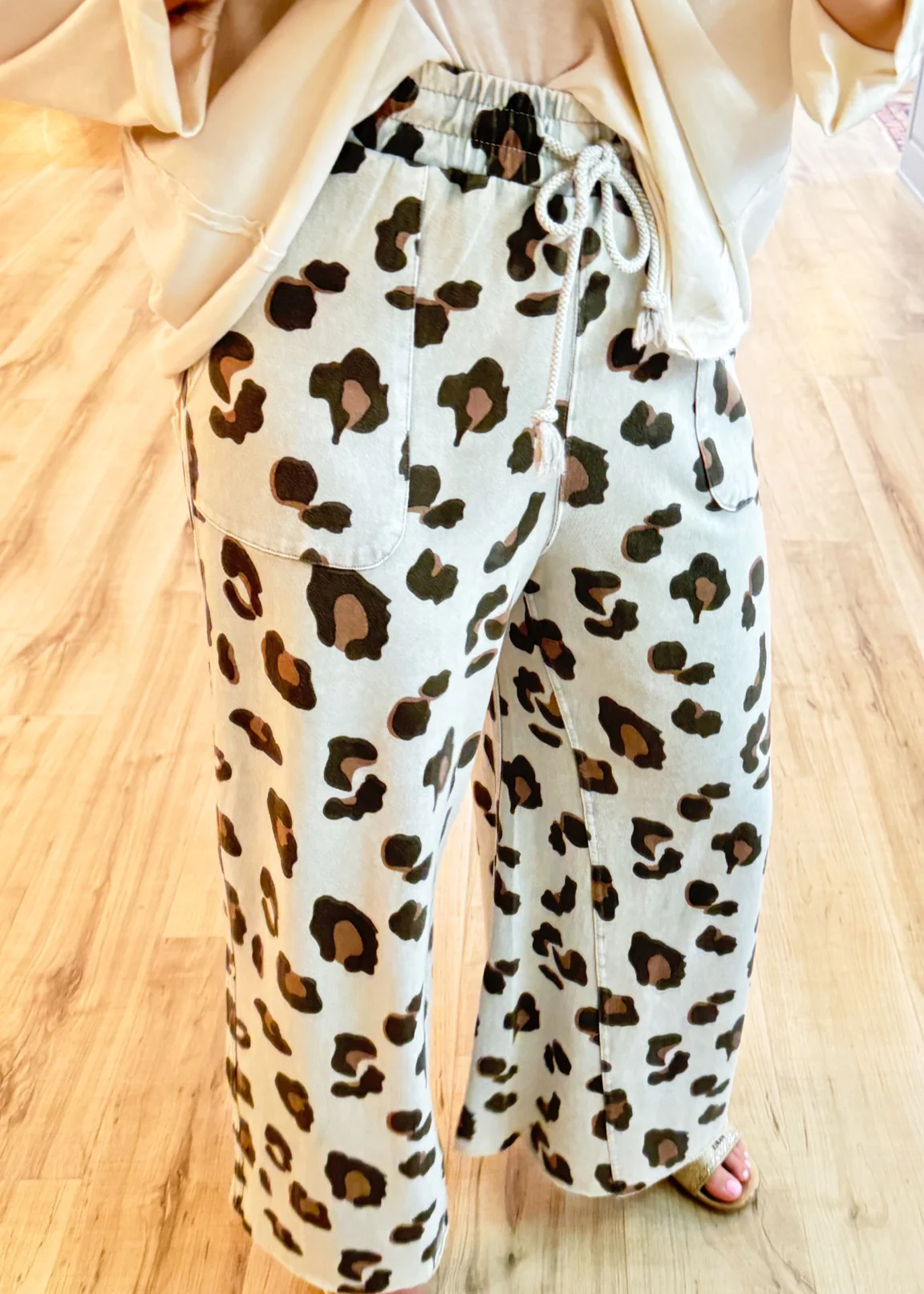 Stone Grey Cheetah Print Mineral Washed Wide Leg Pants