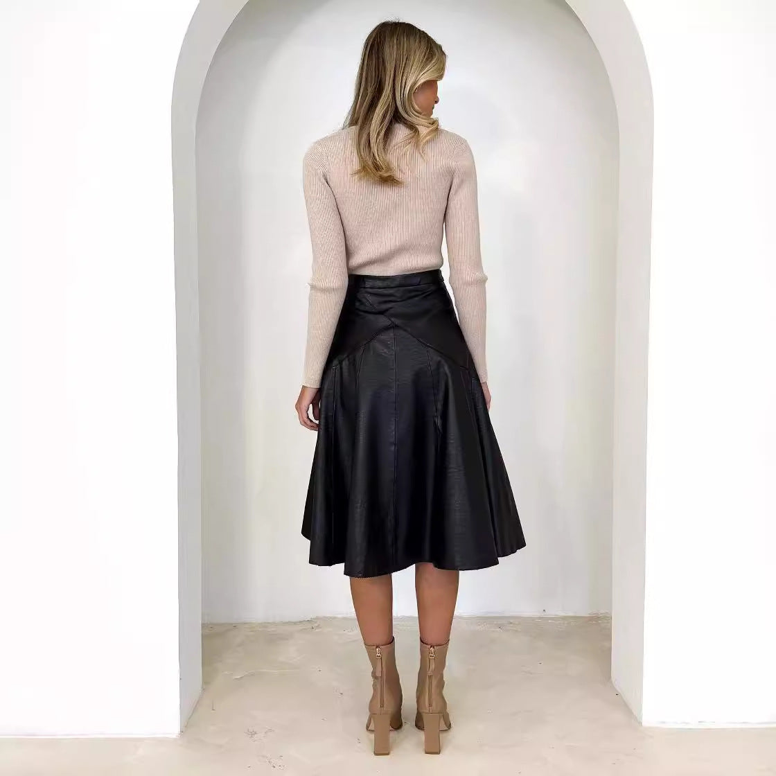 Leather and high waist pleated skirt